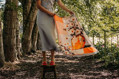 This design merges expressive brushwork with a structured, modern backdrop. Loose, painterly florals sit against softly squared blocks of colour, giving the piece both warmth and quiet order. The composition feels fresh and contemporary, yet still romantic in its texture—a balance of artistry and restraint.