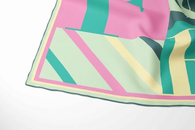 Playful yet refined, this statement silk scarf features the Fig & Fern monogram reimagined in a fresh palette of blush pink, soft mint, sage green and warm butter yellow. Finished with a crisp contrasting border, this contemporary design brings a touch of graphic elegance to everyday styling.
