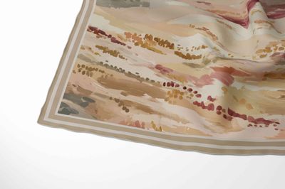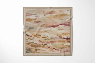 A soft, abstract landscape in warm, earthy tones. Layers of sand, blush, terracotta, and muted gold create a flowing, natural pattern inspired by open landscapes and rolling terrain.