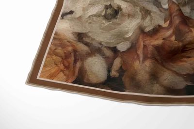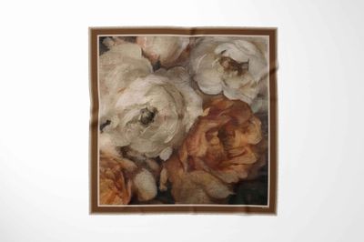 A rich floral design with a soft, vintage feel. Warm tones of cream, caramel, and deep amber blend together in textured, painterly petals, creating depth and warmth.